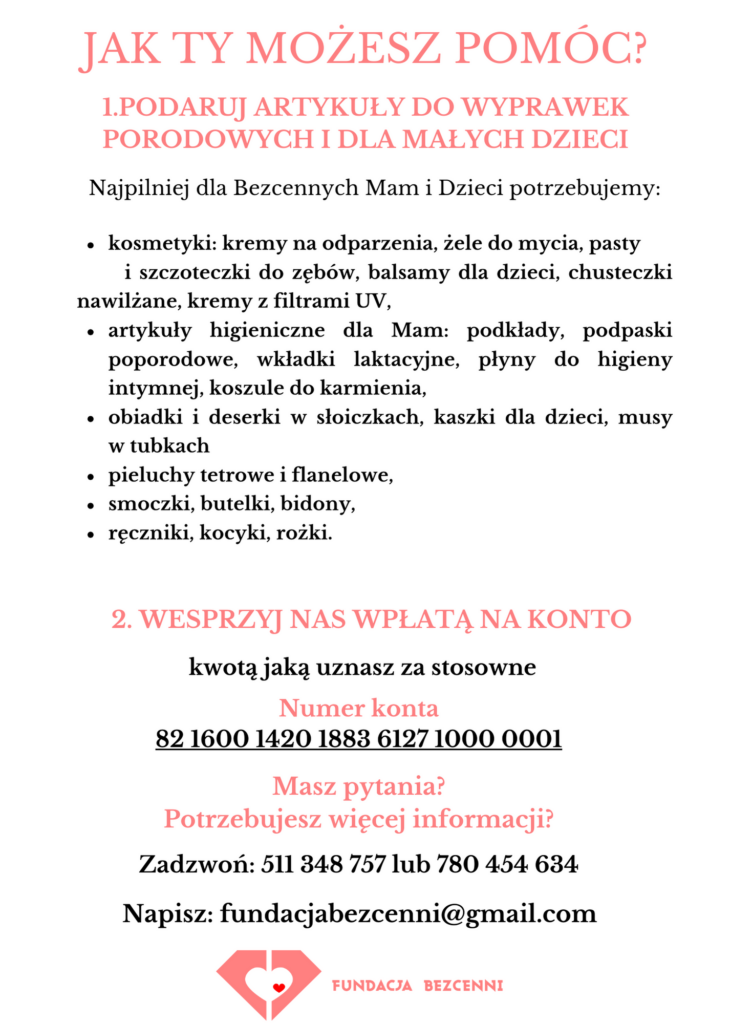 Wpłacając 200 zł zapewniasz mamie i maluszkowi niezbędną wyprawkę do porodu, aby czuli się bezcenni